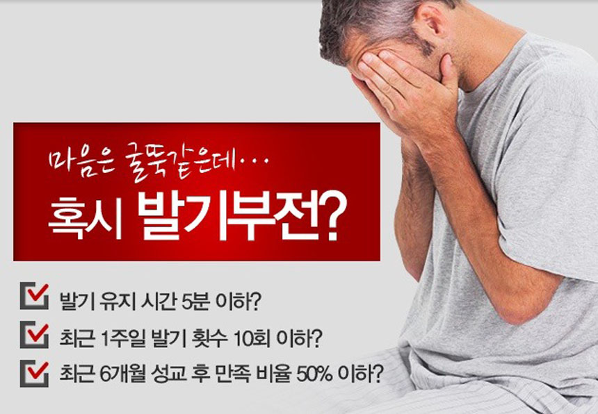 나는 누구보다도 정력에는 자신이 있다고 자부하고 또 주변에서 그렇게 다 인정해 주고 있습니다. 지금 50대 초인데도 와이프랑도 매일 한번씩 할 수 있을 정도며 평균 1주일에 3번정도는 하는 편입니다. 그래도 인터넷을 보고 궁금하여 구매하여 복용하였는데 처음에는 약간 코막힘 정상이 있었으나 별다른 이상은 없었고 아랫부분이 묵직해 지면서 더 하고 싶은 생각이 들었으며 하루에 한번씩을 하더라도 언제든지 할 수 있다는 자신감이 더 욱 들었습니다. 일단 한번 드셔 보세요. 후회하지는 않을겁니다.